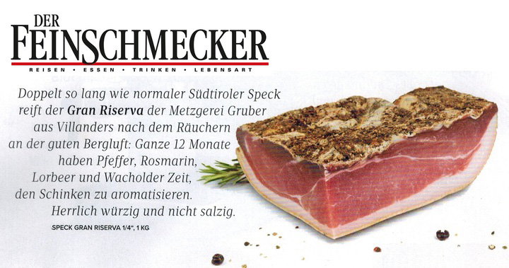 Der Feinschmecker - das Genussmagazin empfiehlt unseren Gran Riserva Speck
